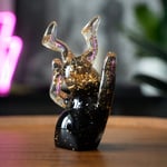 Each figure is handmade and packaged with care. The flow of gold flakes and black gradients differs from piece to piece, giving each sculpture its own unique character.